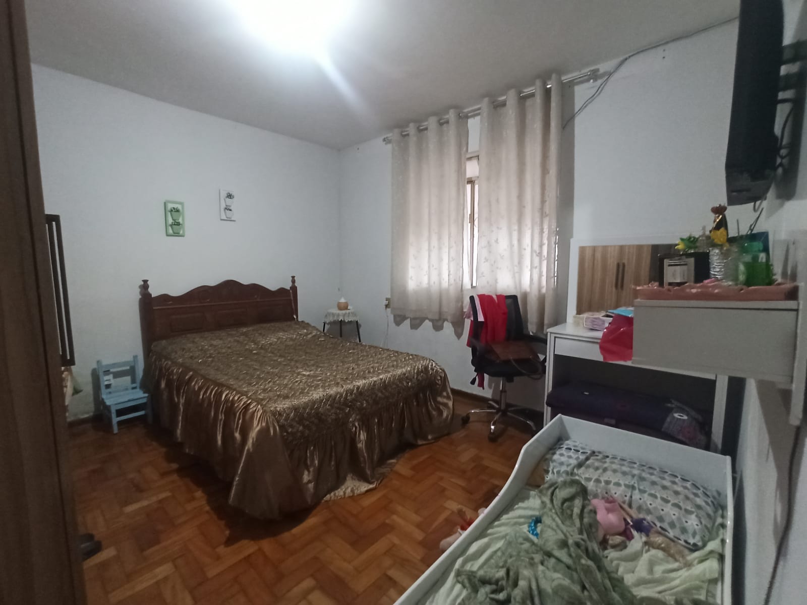 03 quartos, sala, cozinha, banheiro social, área de serviço, terraço e garagem.