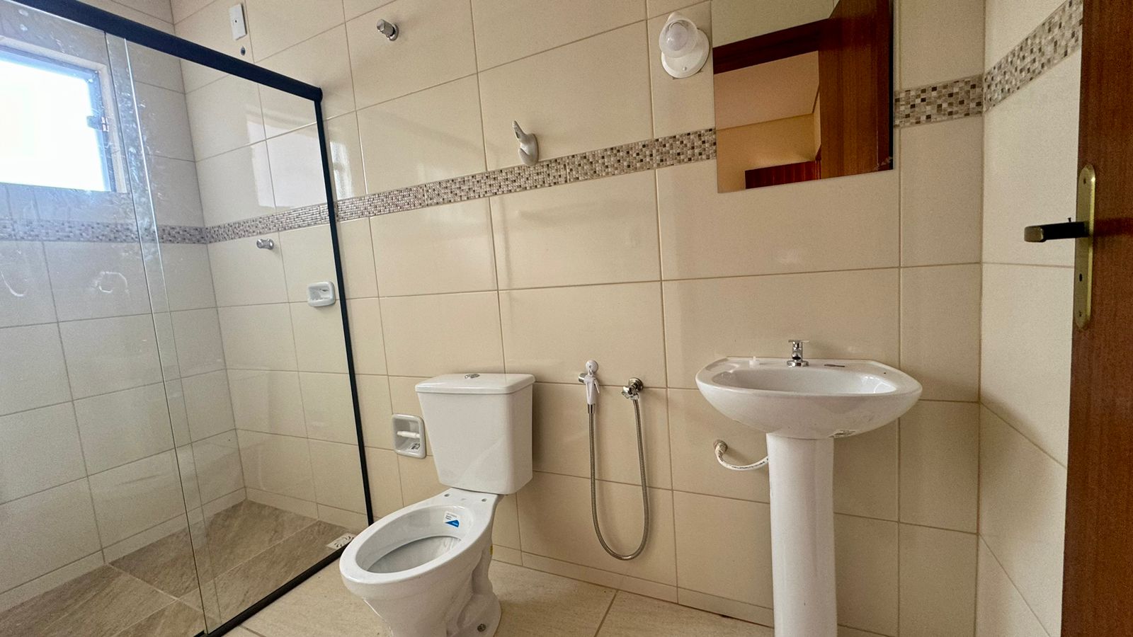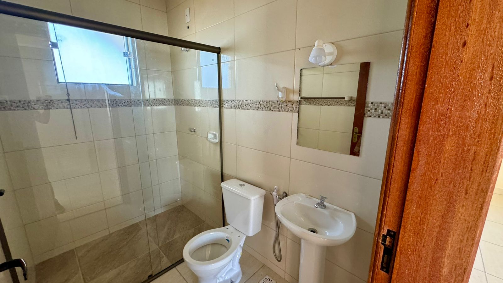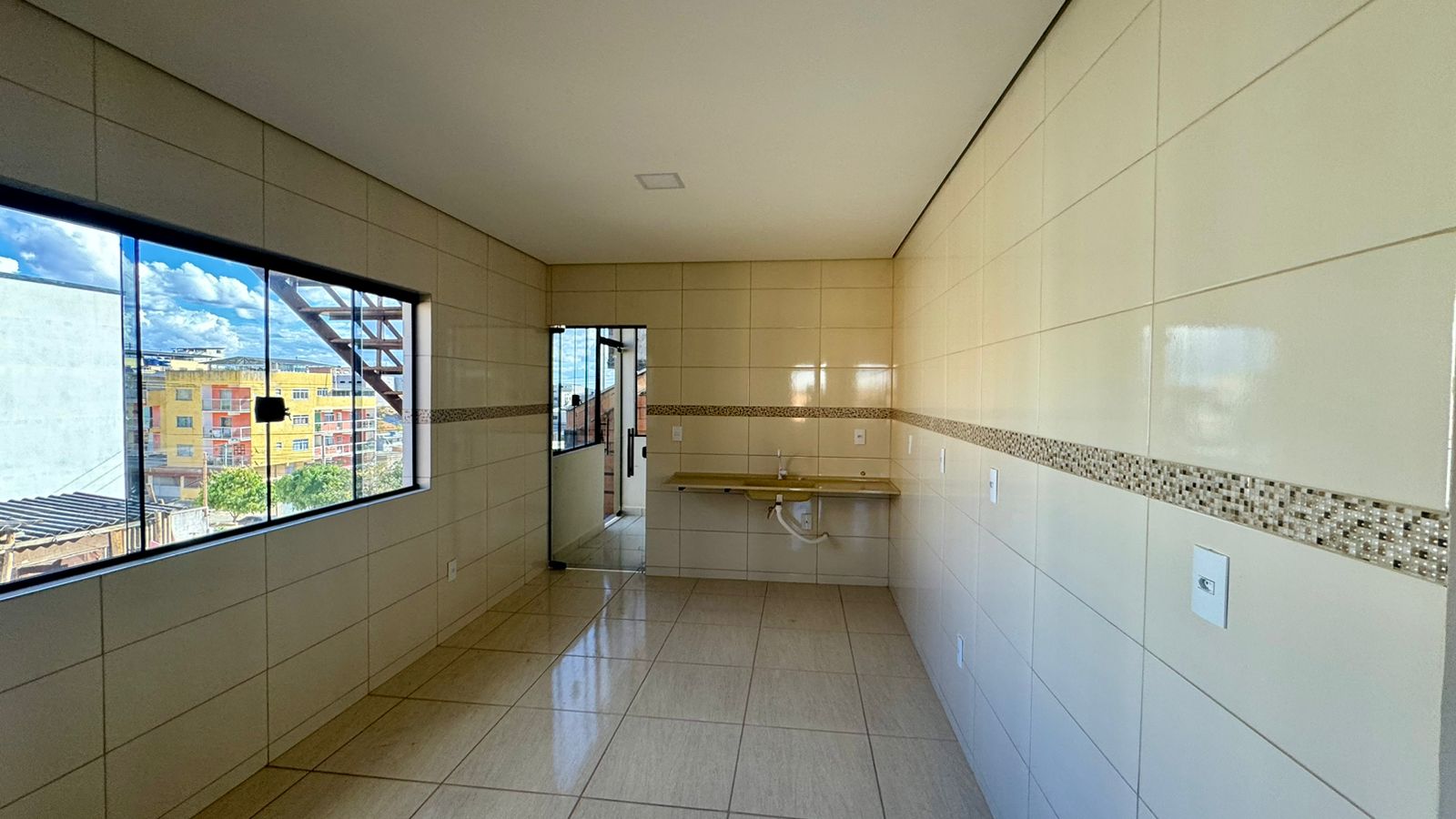 03 quartos sendo 01 suíte, sala, cozinha ampla, banheiro social, área de serviço, terraço com banheiro e garagem para 01 carro.
