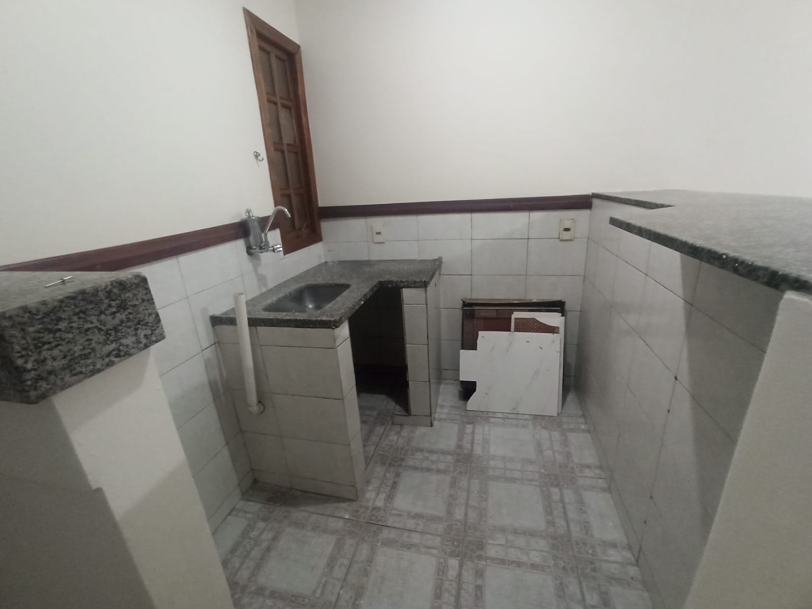 Quarto, sala conjugada com a cozinha, banheiro social e área de serviço.