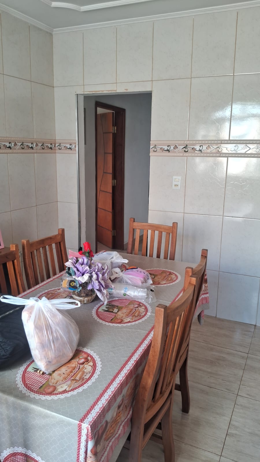 03 quartos sendo 01 suíte com armário embutido, sala, copa, cozinha, área de serviço, garagem para 03 carros e quintal.