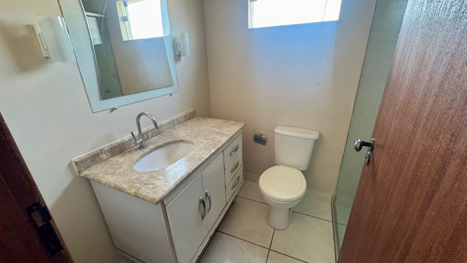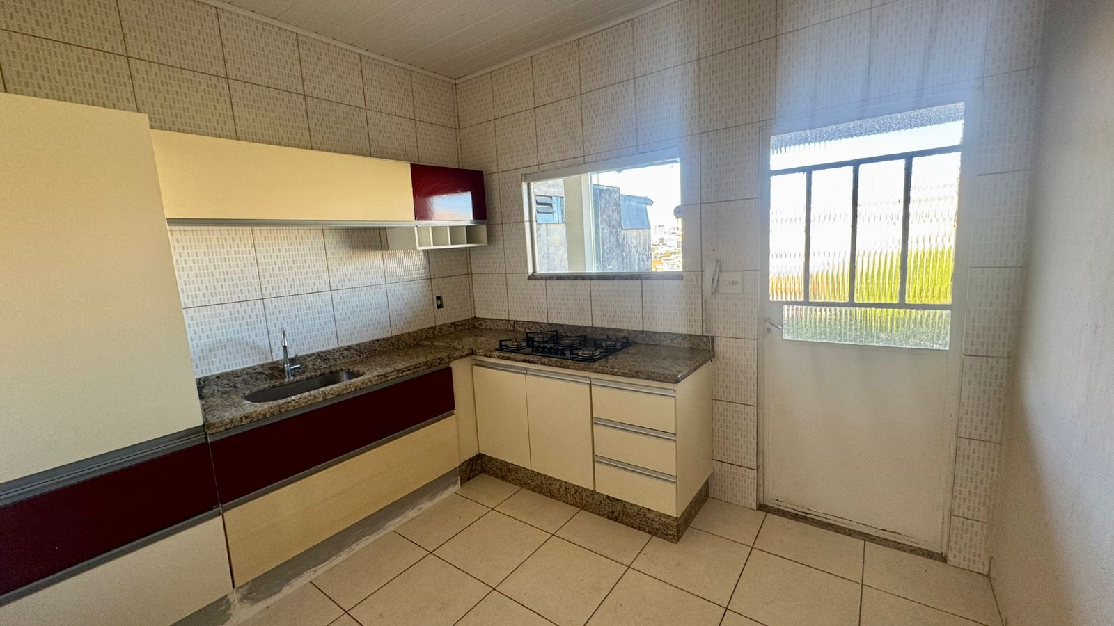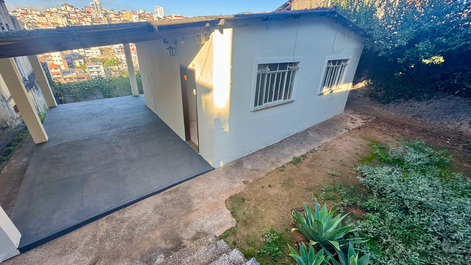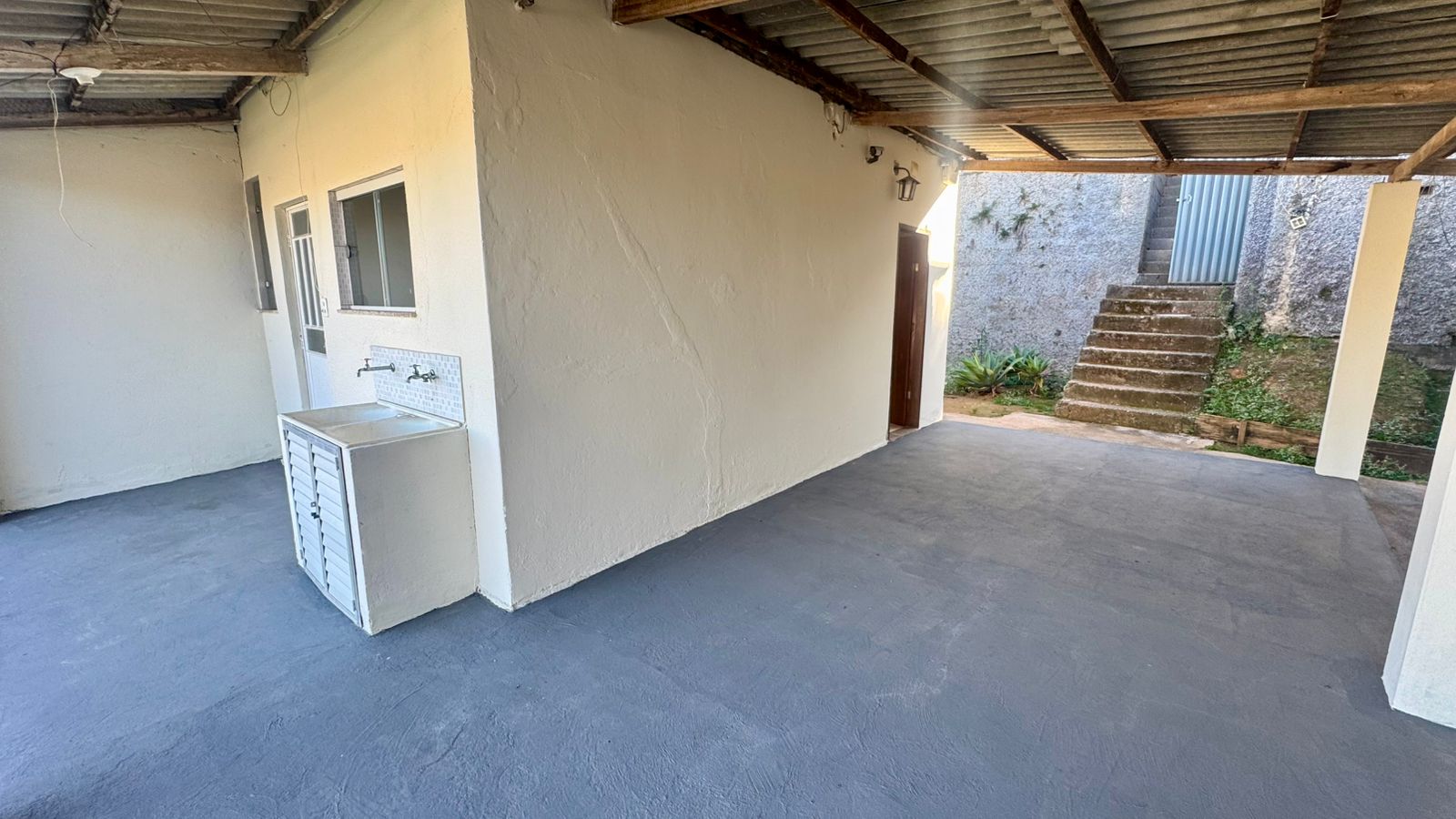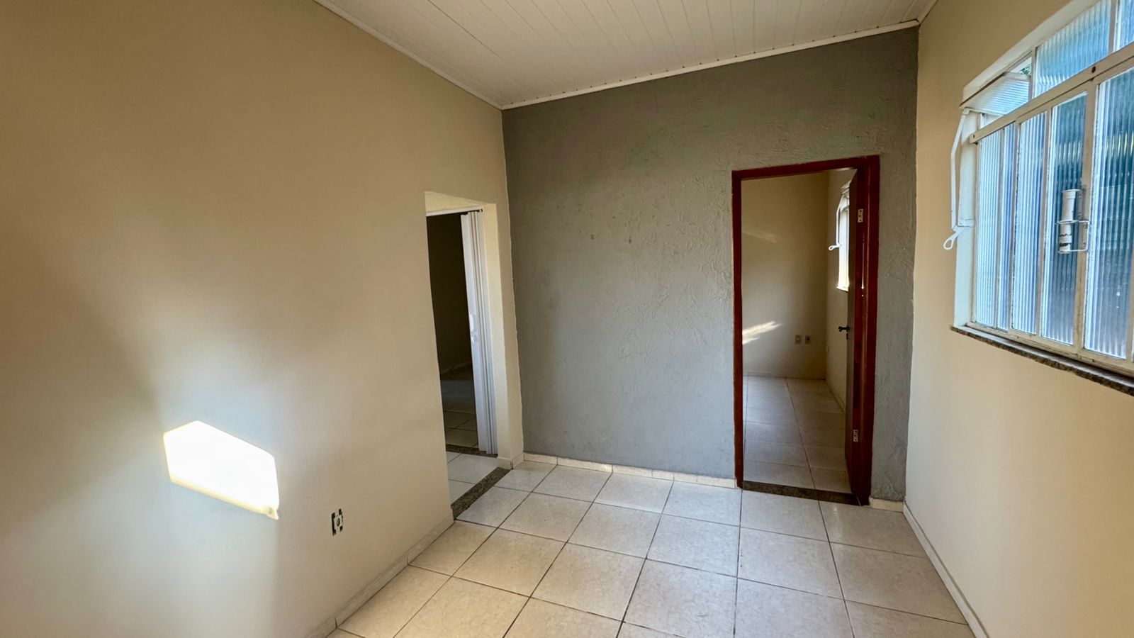 02 quartos sendo 01 suíte, sala, cozinha, banheiro social, área de serviço, garagem ampla e quintal amplo.
