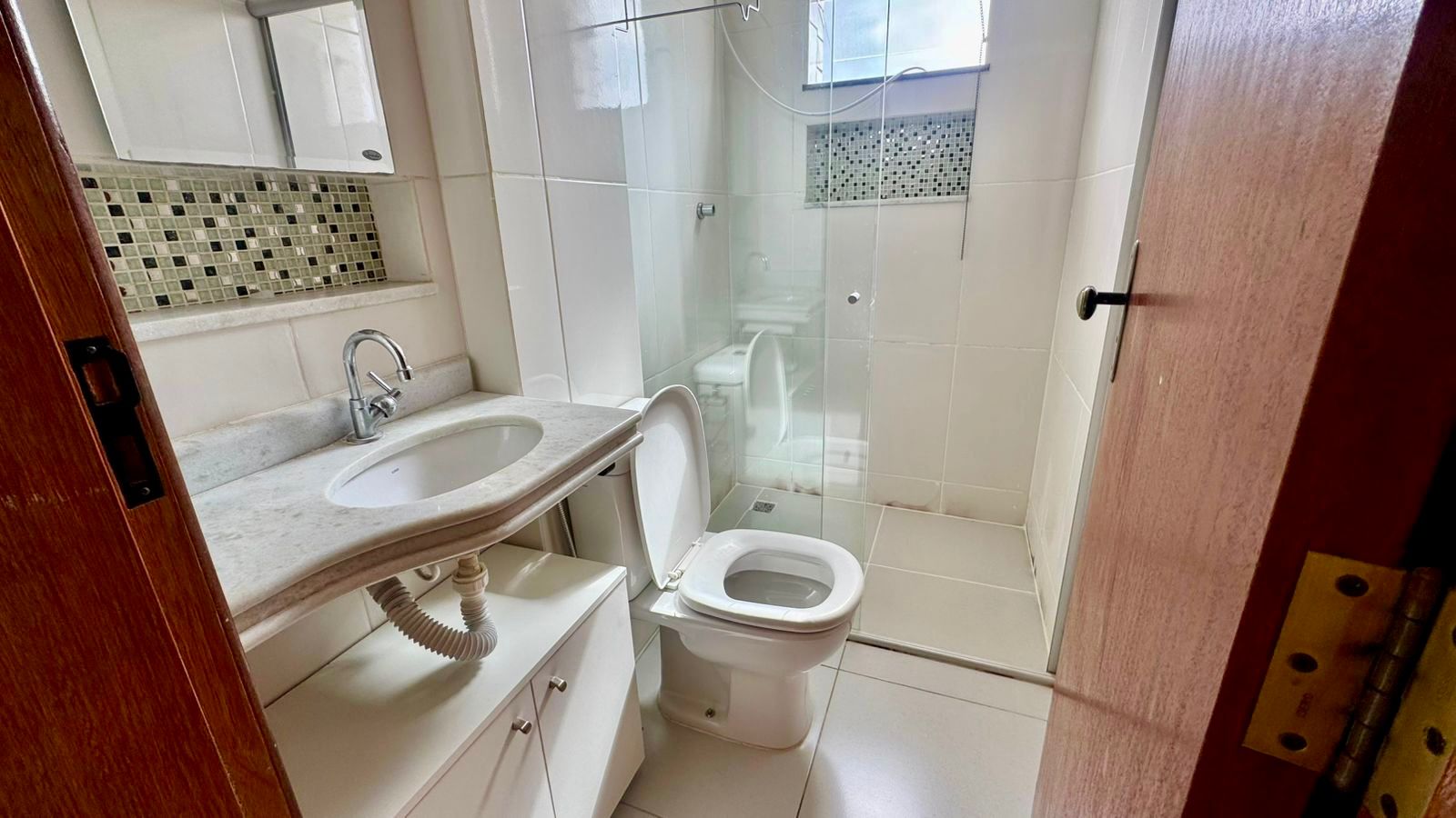02 quartos sendo 01 planejado, sala com rebaixamento de gesso, cozinha planejada, banheiro social, área de serviço e garagem.